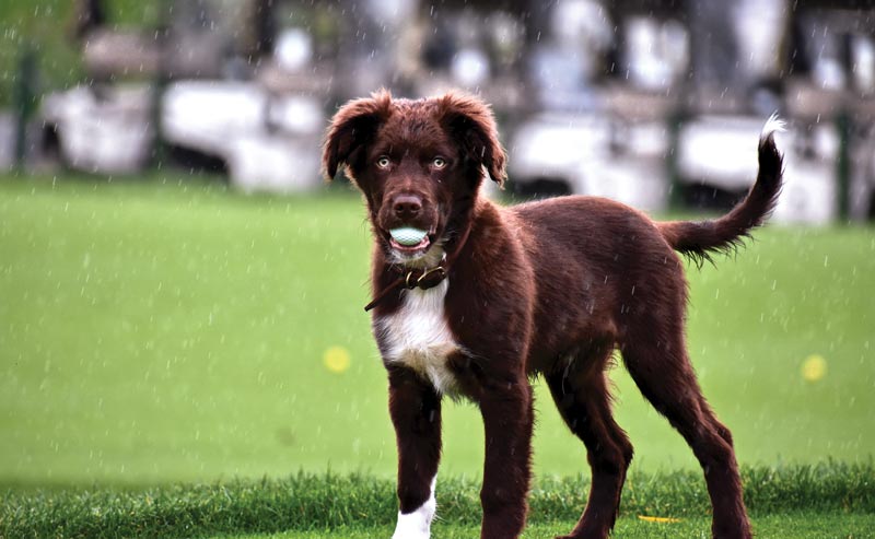 Superintendent Ryan Semritc’s young border collie/Brittany mix is popular with golfers at Willows Run Golf Complex in Redmond, Wash.