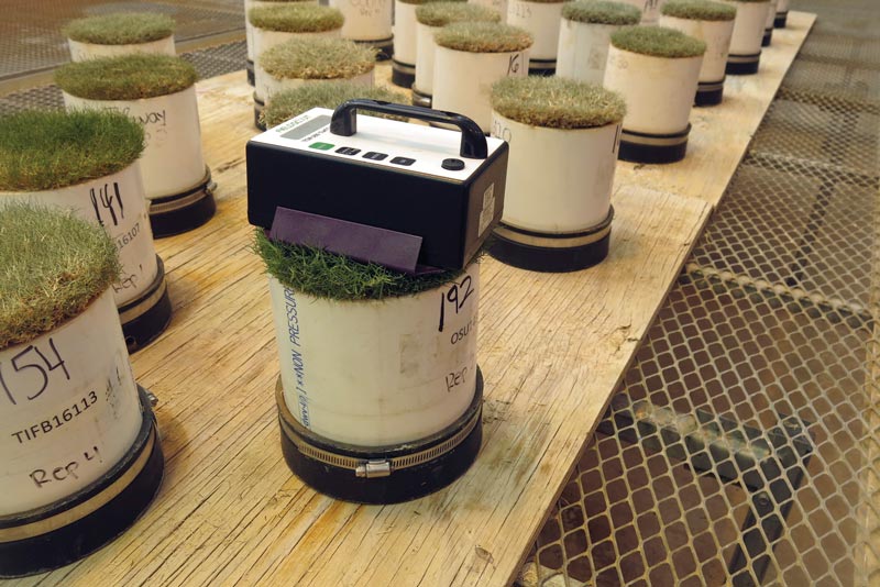 All the cultivars were grown in a rainout shelter in the field and in 6.7-inch (17-centimeter) pots in a greenhouse under drought conditions. The cultivars in the greenhouse did not survive more than 15 days, but all the cultivars in the rainout shelter survived 60 days in 2017 and 49 days in 2018 without browning out.